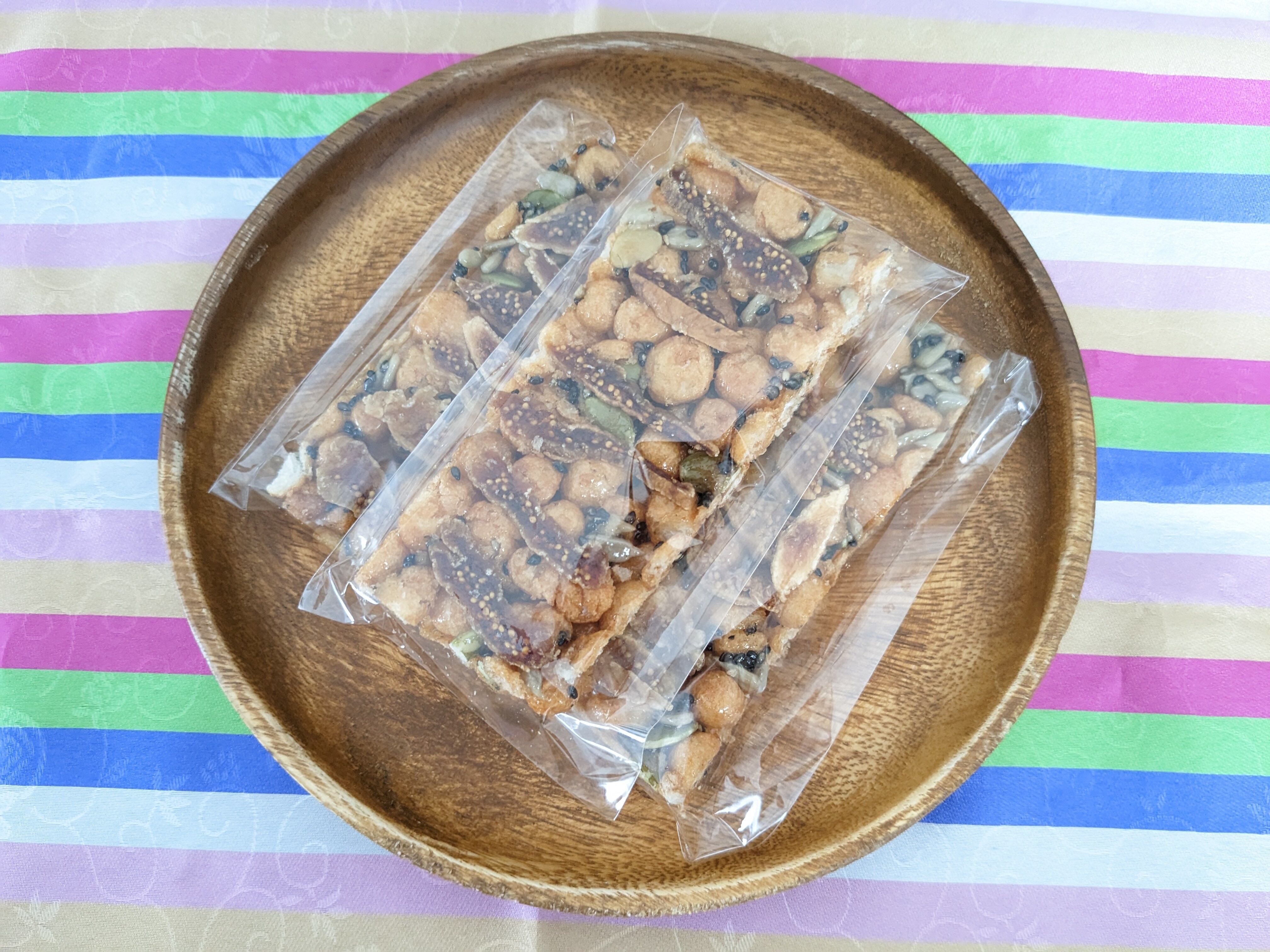 オランダとは柔らかい洋風おこしのような食感が特徴の韓国では昔から食べられている老若男女大好きなお菓子です。小麦を揚げて作った韓国アラレ・かぼちゃ種・ひまわり種などに麦芽糖や水飴ベースの蜜を絡めて、ドライイチヂクをのせて専用の型で固めて作っています。手作りならではの優しい甘さをお楽しみください。